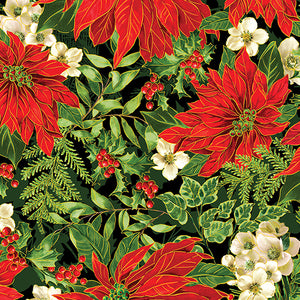 Benartex Poinsettia Serenade Black (Christmas Musical) 14027M-12 Fabric Sold Per Yard
