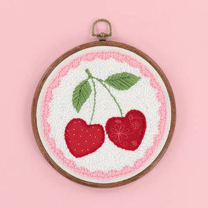 Kimberbell Punch Needle Embroidery Kit Life is Cherry Sweet 8in Faux Wood Hoop # KPNK1009
