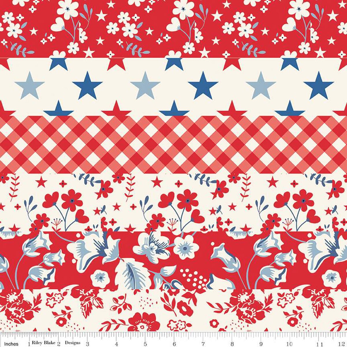 Item Description: Freedom Garden by My Mind's Eye for Riley Blake Designs is great for quilting, apparel and home decor. This cheater print features red and white stripes filled with prints from the collection.