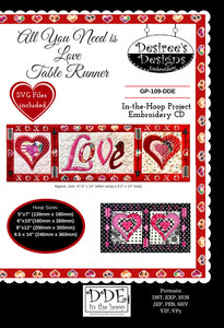 All You Need Is Love Table Runner Pattern from Desiree's Design MACHINE EMBROIDERY