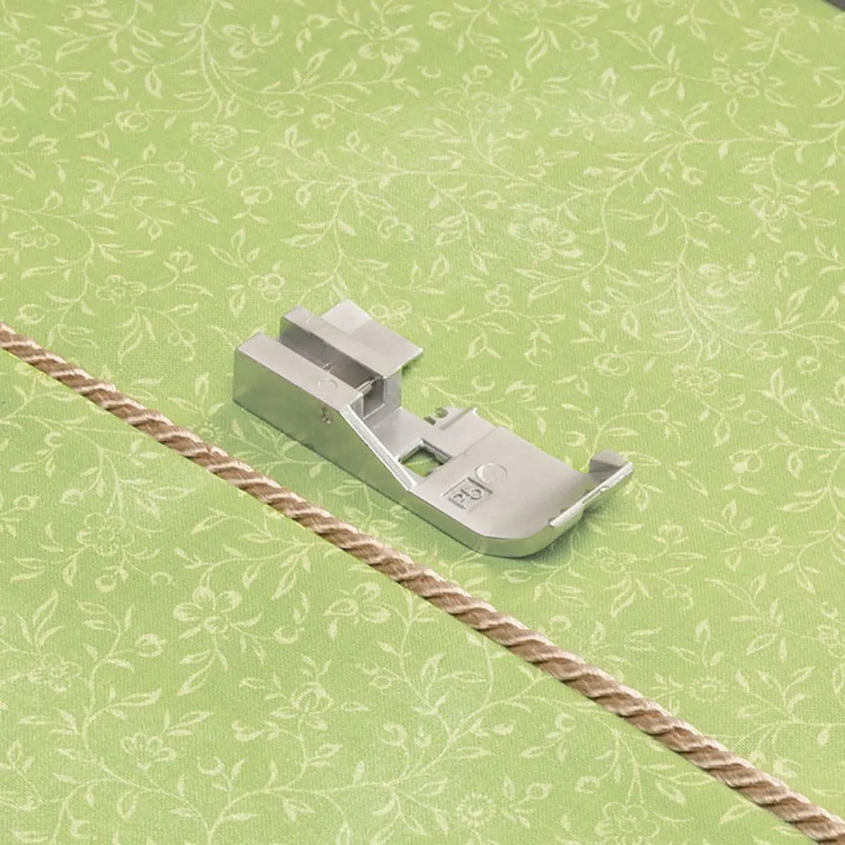 The Cording Foot allows you to attach thin cording, yarn, or ribbon neatly and precisely to sewing projects. Use a tricot stitch and decorative thread for a truly unique look.