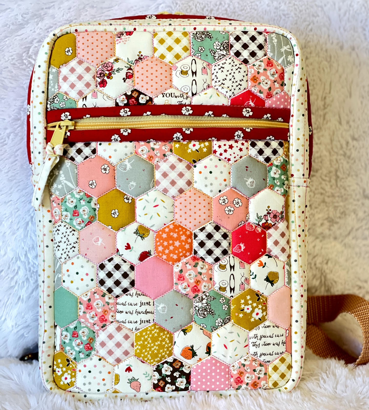 This is such a fun sew!!! Itlooks intimidating but it’s actually quite fun! The inside seams are bound but one side of the binding goes on before you even sew the bottom panel and zipper panel on the bag! Then just turn and finish. The Glue Baste It is a game changer for binding on bags!