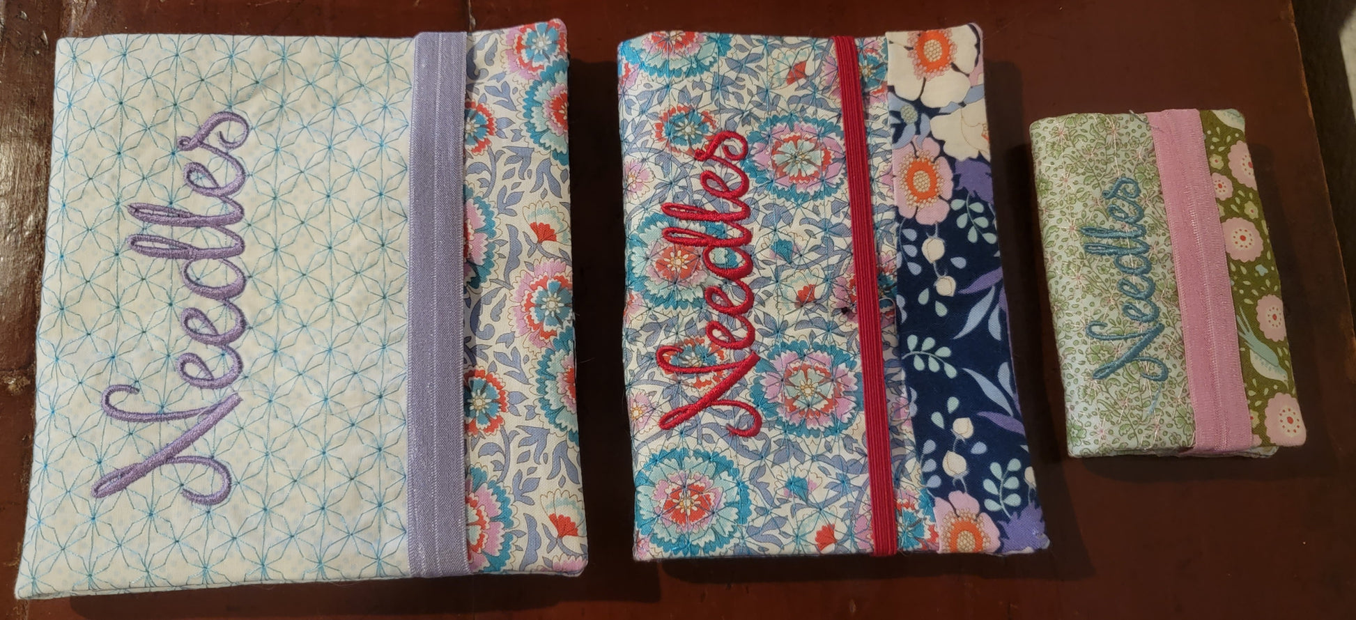 Stitch Needle Notebooks 2, which hold larger packs of needles! The large case holds 8 needle packs up to 1.75” wide + 4 needle packs up to 1.5” wide. The medium case holds 8 packs of needles up to 1.75” wide. The small case holds 2 needle packs up to 1.75” wide or 4 packs up to 1.5” wide. The design is completed in two easy hoopings. Design Info: Extra Large, Hoop Size: 9x14, Design Sizes: 8.1” x 12.2” & 7.3” x 13.2” Large, Hoop Size: 8x12, Design Size: 7.7” x 10.1” and 7.1” x 9.9” Small, Hoop Size: 5x7, Design Size: 4.9” x 6.9” and 4.9” x 6.9”