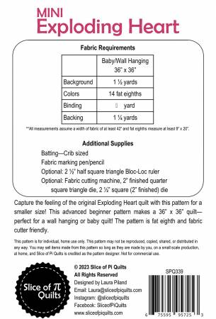Capture the feeling of the original Exploding Heart quilt with this pattern for a smaller size! This advanced beginner pattern makes a 36" x 36" quilt - perfect for a wall hanging or baby quilt! The pattern is fat eighth and fabric cutter friendly.